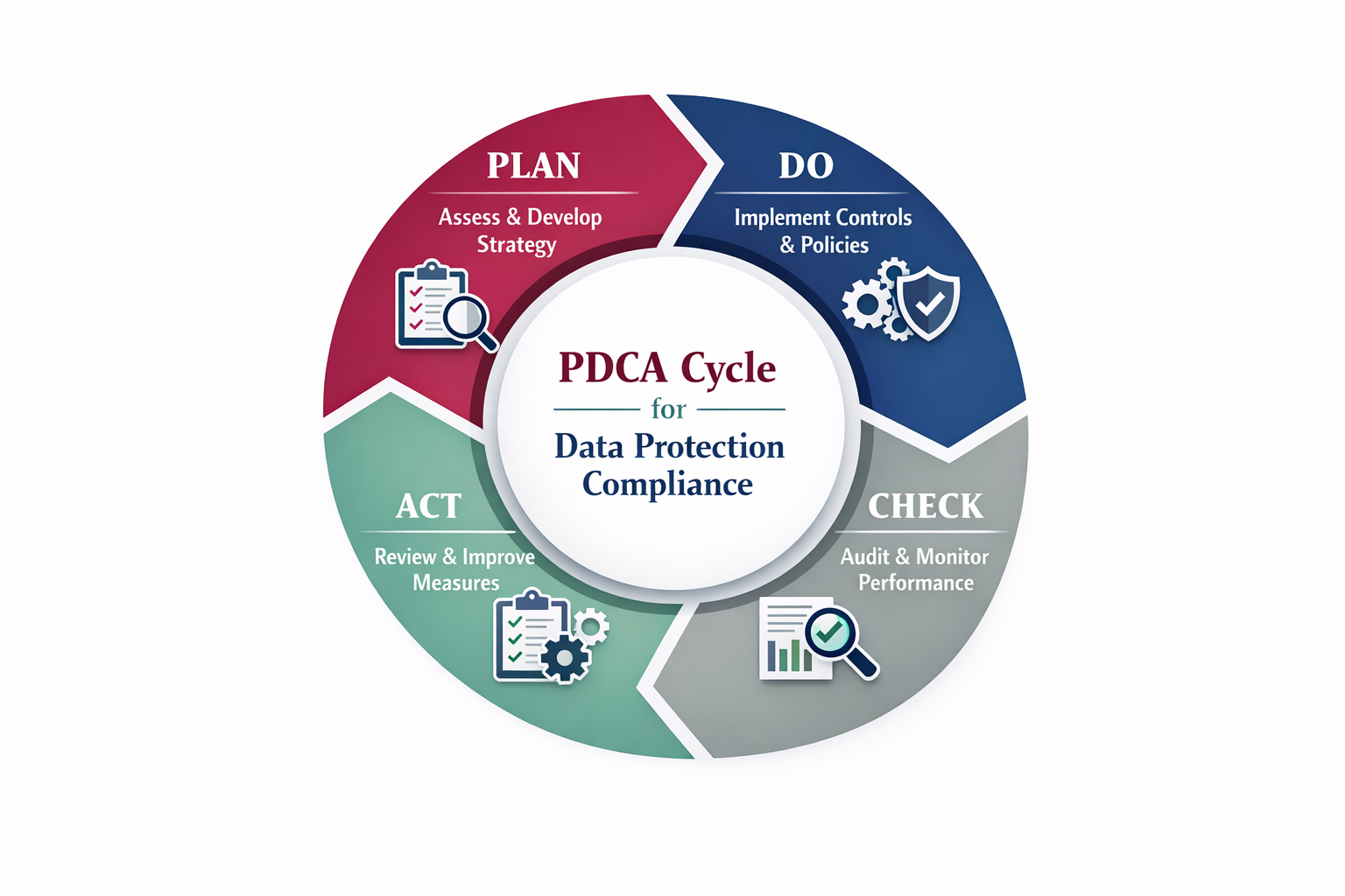 Wir führen sowohl vor Ort als auch aktenbasierte Datenschutzprüfungen durch, abhängig von der operativen Struktur, der Branche und dem Risikoprofil des Kunden. Unsere Audits folgen einem strukturierten PDCA-Zyklus (Plan–Do–Check–Act), um kontinuierliche Verbesserungen an Stelle einer einmaliger Einhaltung der Vorgaben sicherzustellen. Dabei bewerten wir die Geschäftsprozesse der Mandanten hinsichtlich Datenschutz, einschließlich Governance-Strukturen, interner Verantwortlichkeiten, technischer und organisatorischer Maßnahmen sowie Eskalationsverfahren. Ein zentraler Schwerpunkt liegt auf der Überprüfung und Validierung von Records of Processing Activities (RoPA), Datenflusserfassung, -hinweisen, Einwilligungsmechanismen, Datenverarbeitungsvereinbarungen und grenzüberschreitenden Datenübertragungsvoraussetzungen. Wo erforderlich, vergleichen wir bestehende Prozesse mit regulatorischen Erwartungen und Durchsetzungspraktiken, sowohl in Thailand als auch in der EU, ab.